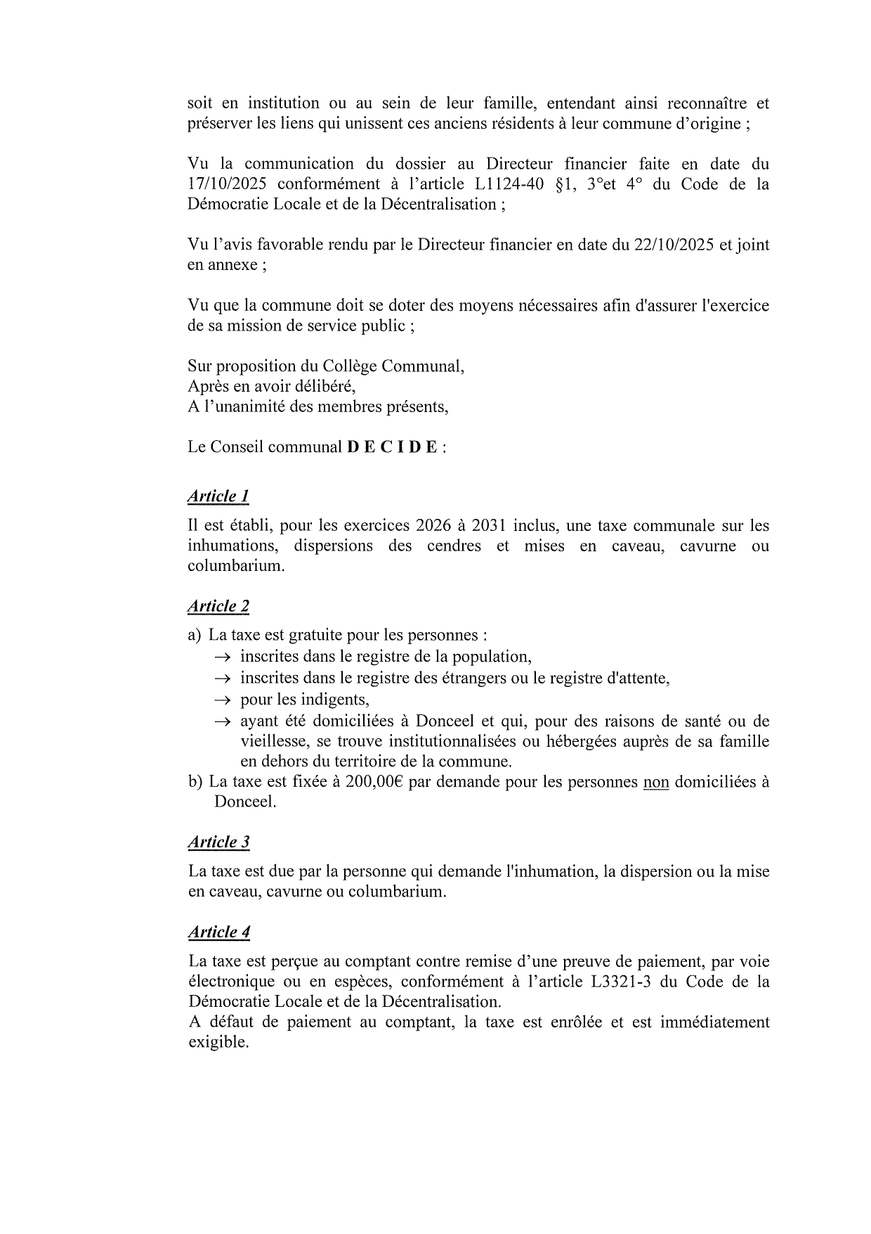 Cette taxe ne vaut que pour les personnes non domincilées à Donceel